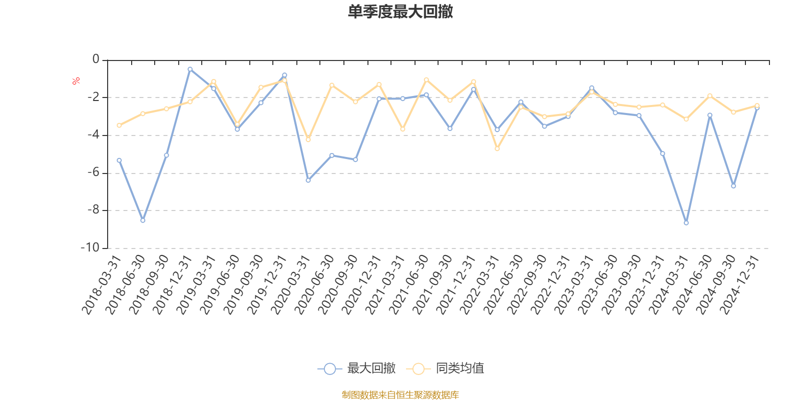 截至1月22日,基金近三年最大回撤为13.04%,同类可比基金排名94/502。单季度最大回撤出现在2024年一季度,为8.65%。